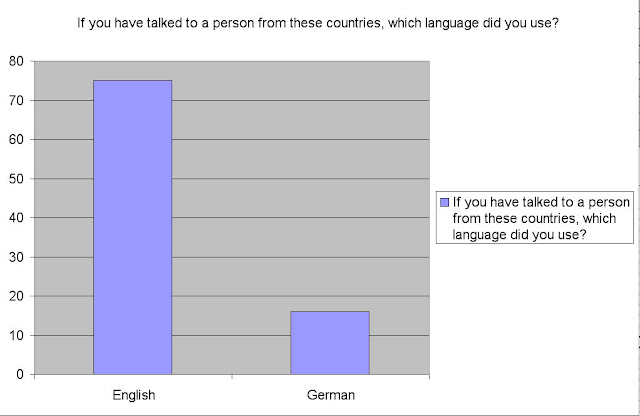 We can see that most people (75) used English as a communication language and a significant number (17) used German too. The use of other languages for international communication was very small.