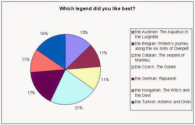 We can deduce from the answers to the questionnaire that all legends were popular in a similar way. The participants were asked to choose a favourite legend - quite a hard task. We can see that all legends have a similar level of popularity. They were all appealing in a similar way.